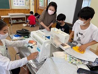 6年生の家庭科で「ミシン体験学習」を行いました。ご指導いただいたのは、北郷婦人会の皆様です。ていねいにわかりやすく教えていただきました。今回、製作したナップザックは11月の修学旅行にもっていくので、みんな意欲的に活動できました。婦人会の皆様、本当にありがとうございました。