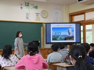 本日は、シンガポールやルクセンブルクに在住経験のある地域の方を講師としてお招きして国際理解教室を行いました。本校は、一昨年前までシンガポールとの交流活動を行っていましたが、コロナ禍で今年も中止となり、世界の国々を知る貴重な学習となりました。