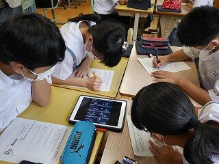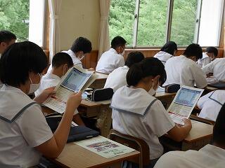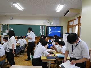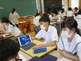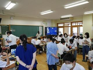 今日は9年生の「いのちの教育」レインボープランの研究授業を日南市内の中学校の先生方(20名)が参観されました。異性に関心をもつこの時期に、ネットに左右されず、正しい判断と行動ができるようにするための授業でした。タブレットでアンケートの結果や他の班の分布図を見て考察し、意見を出し合いながら、メデイアリテラシーとより良い男女交際のあり方を学ぶことができました。
