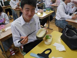 本日、小学校は遠足でしたが、残念ながら雨で校内遠足となりました。中学生は「弁当の日」ということで、ほとんどの生徒が自分で弁当を作って美味しそうに食べていました。作ることでお母さんの大変さを実感できる良い機会となったようです。