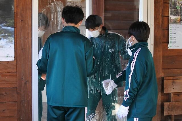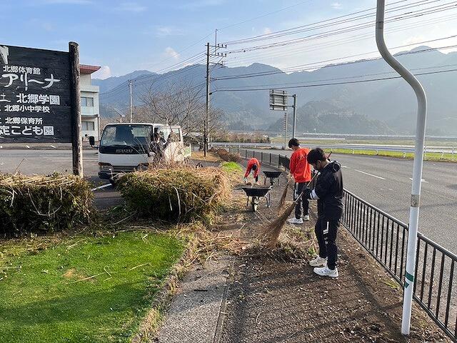日曜日に、まちづくり協議会の北郷駅清掃が行われました。その清掃に、今回は6名の生徒がボランティア活動として参加しました。参加した男子生徒は、駅舎のすす払いや窓拭き、女子生徒はプランターづくりやトイレ清掃に、寒い中一生懸命取り組んでくれました。