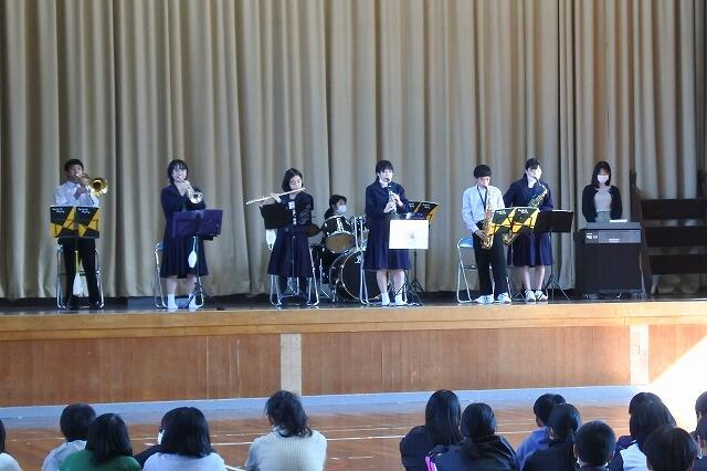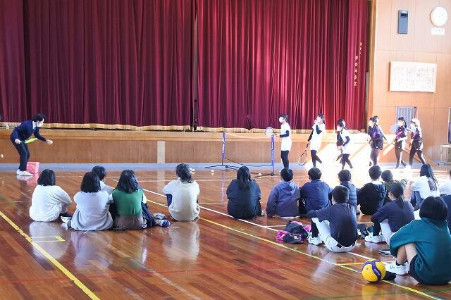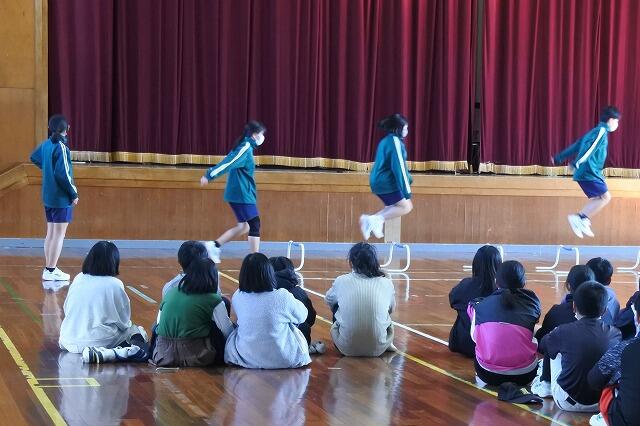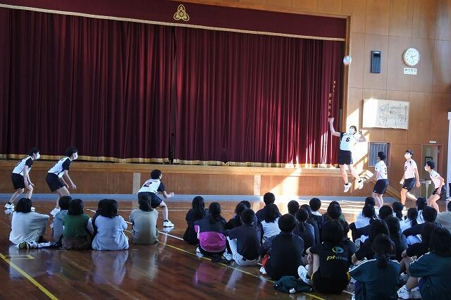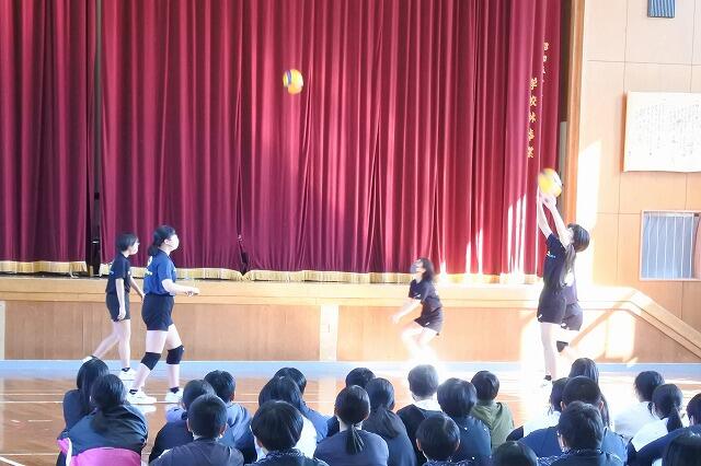 小学部の6年生に向けた部活動紹介を実施しました。現在、中学校では男女バレーボール部、男女ソフトテニス部、野球部、陸上部、吹奏楽部が活動をしています。本日の各部の紹介では、毎日の練習の様子を趣向を凝らして実演してくれました。6年生は今月の17日(金)より、部活動の見学や体験入学ができるようになります。そして4月には、一人でも多くの新7年生が部活動に入部してくれることを期待しています。