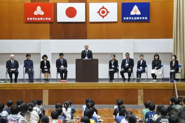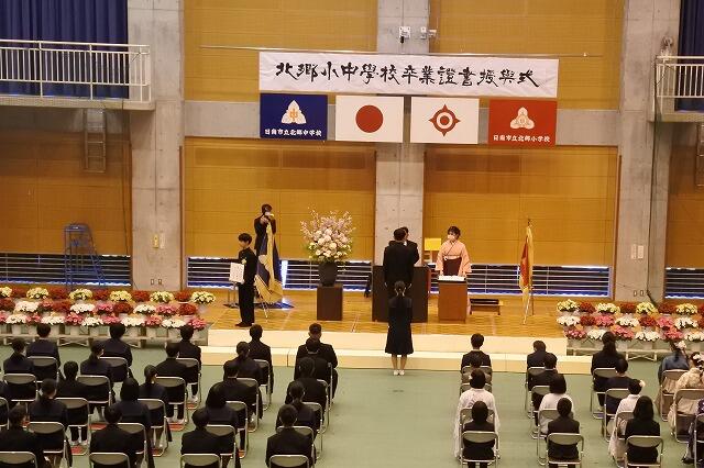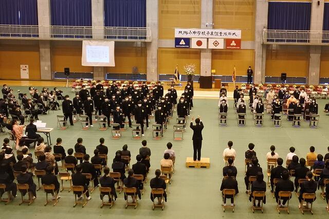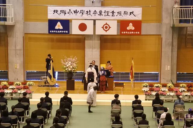 本日、日南市教育委員会より教育長職務代理者として、郷谷純一先生にご出席いただき、第14回卒業証書授与式を執り行いました。今年度は、6年生24名と9年生40名がこの学び舎から巣立ちました。それぞれの進学先や就職先での活躍を期待しています。
