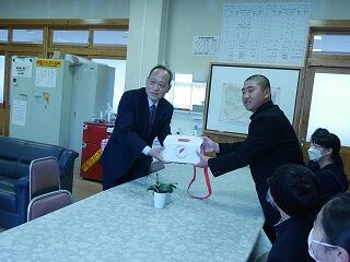 生徒会の恒例行事となった「赤い羽根共同募金活動」を12月から2週間実施しました。この活動で集まった募金を昨日、社会福祉協議会の会長に贈呈しました。児童生徒の善意で集まったお金を有効につかっていただきたいと思います。