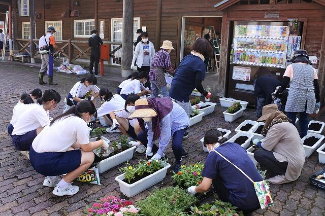 8月7日(日)に、北郷まちづくり協議会が北郷駅の清掃活動を実施しました。この活動に、本校から22名の生徒がボランティアで参加してくれました。男子生徒は、天井のすす払いをしたり、窓ふきをしたりして、駅舎内の清掃を手伝いました。また、線路沿いの敷地にひまわりの種を植える花壇づくりも行いました。一方、女子生徒は、婦人会の方々と一緒に、駅舎に飾る花をプランターに植える作業を行いました。暑い中での2時間あまりの作業でしたが、参加してくれた生徒は、汗やほこりにまみれながら、最後まで一生懸命頑張ってくれました。