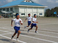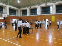 5月18日(日)、朝から天気に悩まされながらも、当日午前9時に態度決定し、生徒と呼びかけに駆けつけてくださった約50名の保護者の皆様のおかげで、グラウンドの水抜きと土入れにより整備をすることができました。そして、12時30分から、体育館で開会式・エール交換を始め、スタートしました。その後は雨も降らず、白熱した競技を繰り広げることができました。
