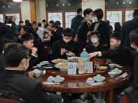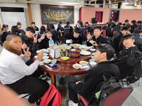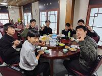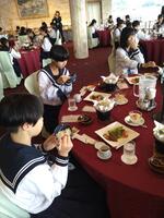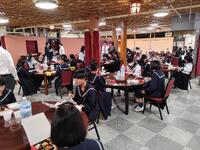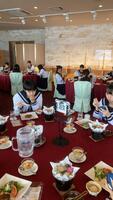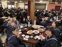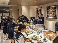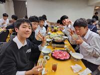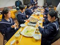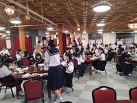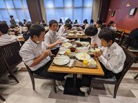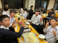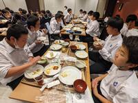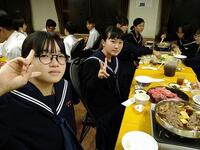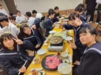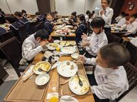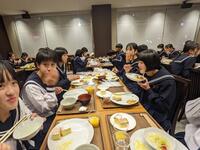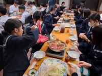 昨夜はほぼ時間通りの行動が取れました。特に入浴については、マナーを守って行動できました。夕食はボリュームがあり、丹後牛のすき焼きを食べてエネルギーをチャージできました。食後にはテーブルごとに食器やコップをまとめていて、たいへん礼儀正しい2年生でした。