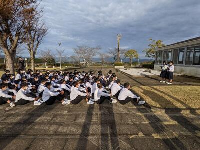 12月8日(木)の2~4校時、各学年ごとに長距離記録会を行いました。記録会前に、「あと20分だぁ~」などと緊張の声をもらしている生徒が多数いました。本番になると、たくさんの保護者の方も観戦に訪れる中、生徒たちはとても力強い走りをしていました。寒い中、力を振り絞ってよく頑張りました。
