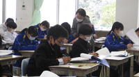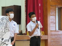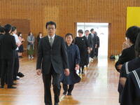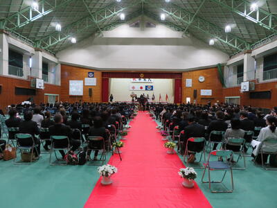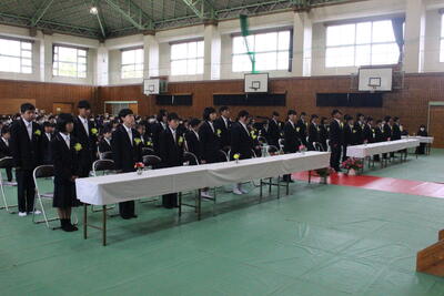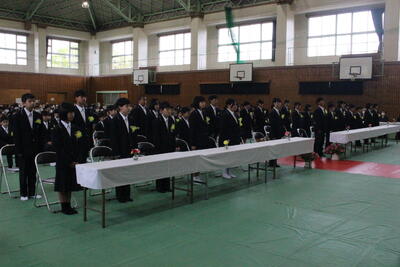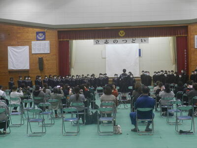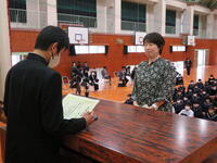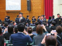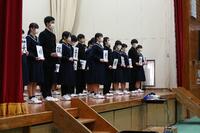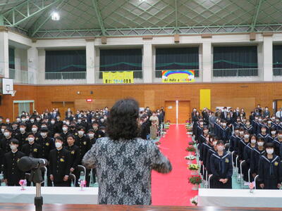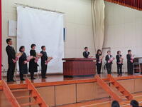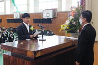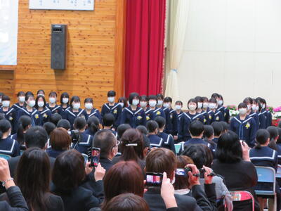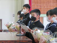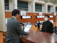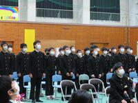 3月26日(火)、令和5年度修了式が行われました。1年間の反省では、1、2学年と生徒会代表の生徒たちが、この1年間を振り返り、反省と次年度の抱負について述べました。修了証が1、2年生に授与された後、校長先生が1学年に見られた「慮る行動」や2学年の「自発的行動」などを賞賛し、さらなる飛躍への期待を伝えられました。最後は元気な校歌斉唱の歌声で締めくくりました。