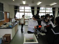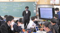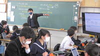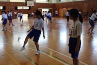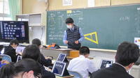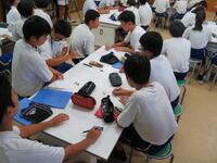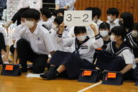 宮崎県国際交流員の方の講話では、シンガポールの食や文化などを画像や映像を使って、楽しく、わかりやすく紹介していただきました。体験活動では、「クティクティ(おはじきのようなもの)」や「チャプテー(足でシャトルのようなものを蹴り合う)」など、シンガポールの伝統的な遊びを体験させていただき、生徒たちはとても盛り上がっていました。