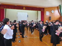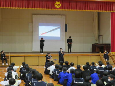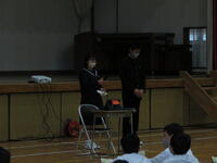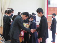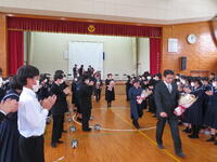 3月12日(火)の昼休みは、全校レクリエーションで交流を深めました。グランドコンディションが悪かったため、体育館での実施でしたが、ボール送りゲームやじゃんけん列車など、みんなでとても楽しんでいました。3年生がもうすぐ卒業してしまうので、お互いに良い思い出となりました。集会の時間には、「卒業生を送る会」が行なわれました。3年生へのメッセージ動画を視聴したり、1,2年生各クラスからの名言が贈られたりしました。3年生からは、とても満足した感動のお礼の言葉がありました。