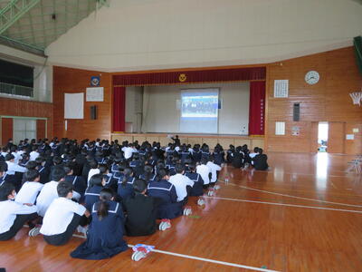 9月25日(水)の5校時、「第2回情報モラル教室」を行いました。内容は公益社団法人みやざき被害者支援センターの日髙親弘氏による講話で、性犯罪やデジタル性暴力、グルーミングの手口などについて説明してくださいました。生徒たちはメモを取りながら、真剣に話を聞いていました。講話の最後には、「さぽーとねっと宮崎」の紹介があり、その中で「心配していること、迷っていることなどがあったら、一緒に安心できる方法を考えましょう」と話してくださいました。