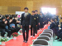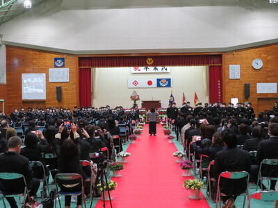 4月9日(火)に令和6年度入学式を行いました。62名の新入生が、大きな制服に身を包み、緊張しながら会場に入ってくる姿はとても初々しかったです。校長先生をはじめ、多くの方々の祝福を受けて、南郷中学校の生徒となりました。呼名の時の返事がとても元気がよく、姿勢や所作も素晴らしかったです。誓いの言葉も堂々とした態度で述べられ、不安よりも期待の方が多く伝わってきました。これからは、新入生62名を加えた207名で、さらに南郷中学校を盛り上げていきましょう。