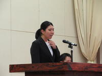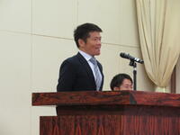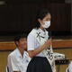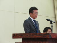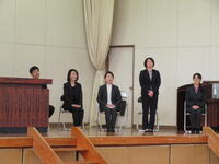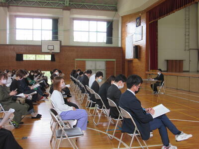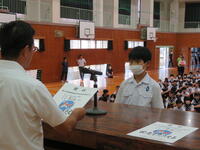 ※1枚目の画像は、大星教諭の産休後補充講師として、2学期から勤務していただく春田先生が自己紹介をしている様子です。