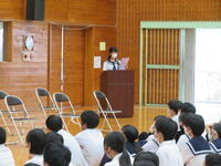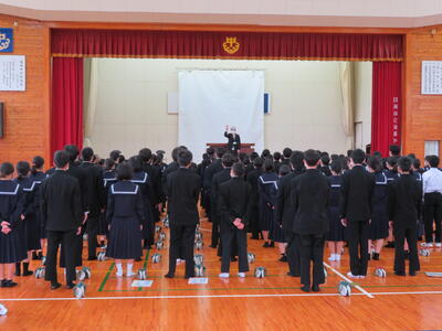 校長先生の話は、「時間を大切にするということは、限りある命を大切にすることであり、そのことは自分の人生を真面目に考えていることにつながる」ということや「時間は、いつでも・だれにでも平等に与えられるが、だからといって結果は平等とは限らない。すべては自分次第であるということを忘れないこと」など、【命と時間】の大切さについてでした。