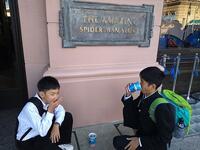 本日の修学旅行3日目では、USJで元気に楽しみました。たくさんのお土産を抱えて集合場所に集まってきた生徒たちは、いろいろな「帽子」を被っていました。楽しい思い出話をバスの中で語り合い、先ほど伊丹空港に到着しました。