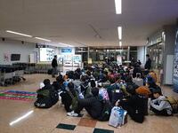 観劇中全員が、身を乗り出して見入ったり、時にはクスッと笑ったりと、舞台の世界に引き込まれていました。また、1年生全員が途中参加する場面もありました。鑑賞後には「友だちともっと仲良くしたいと思った」「ヒロくんのような存在になりたい」などの感想も聞かれ、生徒たち一人ひとりが何かしら心に残るものを受け取ってくれたと思います。芸術にふれる体験は、感性を育むだけでなく、自分や他者と向き合うきっかけにもなります。 ご家庭でどのようなお話だったのか、さらにそこでどう感じたのか、聞いてみてください。