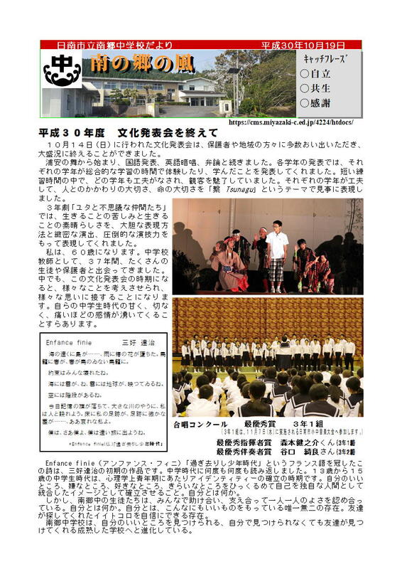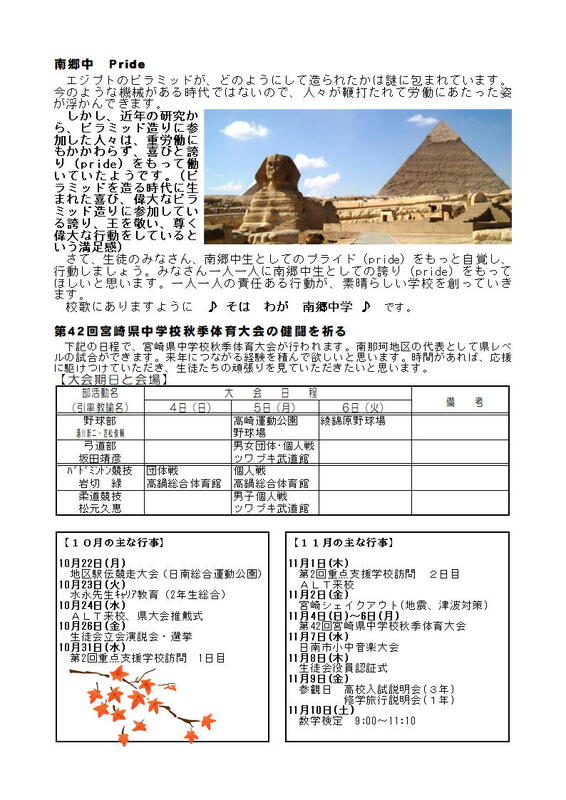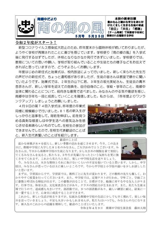 本Webページの著作権は、南郷中学校が有します。無断で、文章・画像などの複製・転載を禁じます。