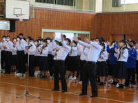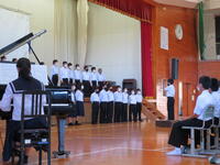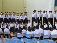 11月2日(水)に開催予定の文化発表会に向け、合唱コンクールリハーサルがおこなわれました。コンクールの流れを確認するだけでなく、他の学級の合唱を聴くことで、今後の練習意欲向上にも繋げることが目的です。校長先生の話の中に、「観客の方々に聴かせるという思いをもつ」、「口をもっと大きく動かし、発音を良くする」、「伴奏・指揮・歌が一体になる」などのアドバイスがありました。本番で十分な力が発揮できるよう、残りの練習期間で何をすべきかを明確にし、実践していきましょう。