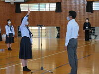 令和5年を迎える学期が始まりました。始業式は、新型コロナウィルス感染症・インフルエンザ等の対策のため、放送での実施となりました。各学年・生徒会代表の生徒が発表した新学期の抱負(一部)は次の通りです。
