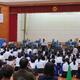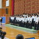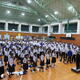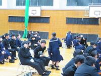 教頭先生からの激励の言葉、校歌斉唱の後、体育大会で団長を務めた2人が、全校生徒とともに盛大なエールを送り、選手たちにとって大きな励みになりました。県大会での選手の皆さんの活躍を楽しみにしています。