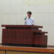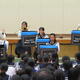 各代表が大会にかける意気込みを述べ、選手を代表して男子バスケットボール部のキャプテンが、緊張を抑えながら選手宣誓を行いました。