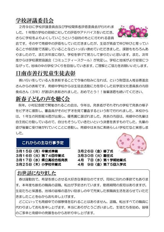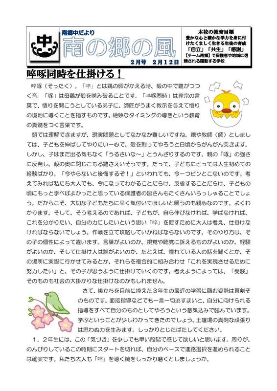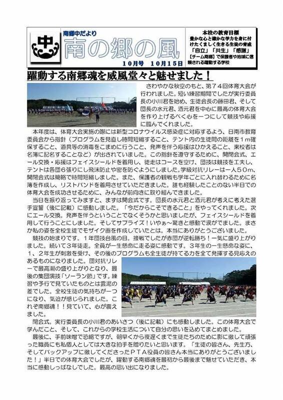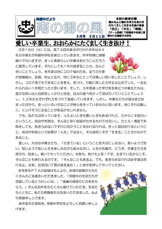 本Webページの著作権は、南郷中学校が有します。無断で、文章・画像などの複製・転載を禁じます。