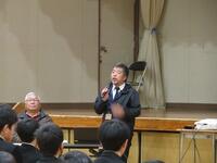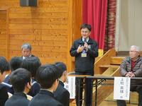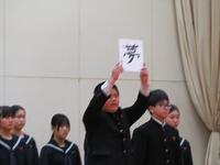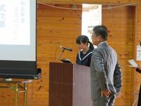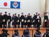 2月9日(金)5、6校時、2年生の「立志のつどい」が行われました。実行委員が中心となって、当日までの準備や当日の会場設営、進行に取り組みました。立志のつどいは、校長先生による「夢叶う」、「奇跡」などの花言葉を有した青いバラの紹介から始まりました。2年生による決意表明では、1人1人が漢字一文字を書いた色紙を掲げ、これから成し遂げたいことを発表していきました。前半終わりには、お祝いに地域コーディネーターの矢野さんと食育ボランティアの方々から手作りちらし寿司の贈呈がありました。