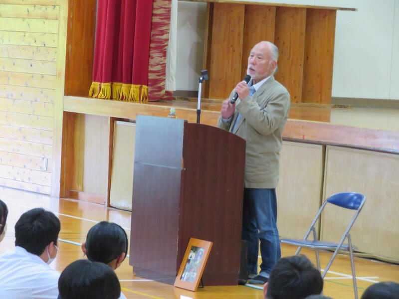 5月18日(木)4校時、情報モラル教育の一環で講演会を実施しました。「命の大切さを学ぶ教室」として、(社)熊本犯罪被害者支援センター自助グループ「さくらの会」代表の米村州弘氏に講話をしていただきました。SNS被害によって最愛の娘さん(次女)を亡くされた被害者遺族のお話を直接聞ける貴重な機会でした。事件から20年経った今でも、被害を招くこととなったパソコンを買い与えた自分自身を責め続けていること、母親や長女もそうであること、笑えなくなったこと、孫ができてもつらいこと等。米村氏の一言一言に重みを感じ、会場には涙を流している職員や保護者、生徒が多くいました。自分の命と友達の命を大切にして、「今」を一生懸命に生きてほしいという米村氏のメッセージは、全校生徒に伝わったことと思います。