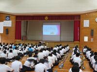 9月25日(水)の5校時、「第2回情報モラル教室」を行いました。内容は公益社団法人みやざき被害者支援センターの日髙親弘氏による講話で、性犯罪やデジタル性暴力、グルーミングの手口などについて説明してくださいました。生徒たちはメモを取りながら、真剣に話を聞いていました。講話の最後には、「さぽーとねっと宮崎」の紹介があり、その中で「心配していること、迷っていることなどがあったら、一緒に安心できる方法を考えましょう」と話してくださいました。