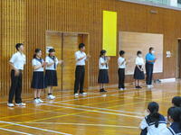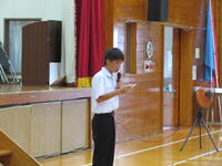 8月1日(火)登校日には表彰と体育大会結団式が行われました。まず県中総体第3位に入賞した軟式野球部が賞状の校納を行いました。九州大会出場まであと一歩というところで、非常に惜しい結果でした。