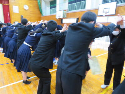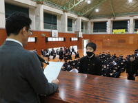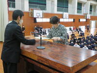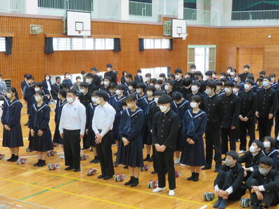 全校集会終了後、本年度退職される先生方のサプライズ卒業式をしました。生徒会が企画したもので、涙を誘う、とても良いサプライズになりました。