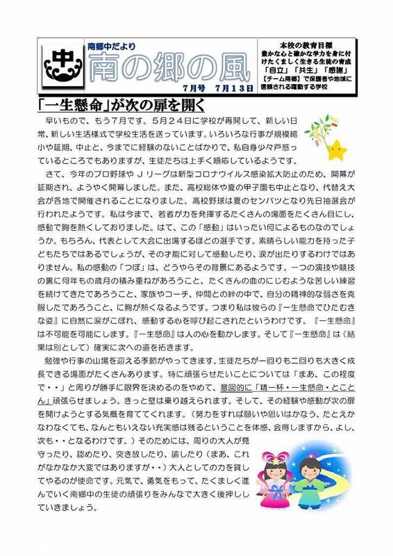 本Webページの著作権は、南郷中学校が有します。無断で、文章・画像などの複製・転載を禁じます。