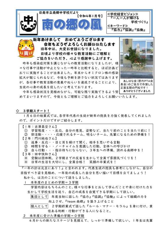 本Webページの著作権は、南郷中学校が有します。無断で、文章・画像などの複製・転載を禁じます。