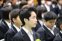 4月9日(火)に令和6年度入学式を行いました。62名の新入生が、大きな制服に身を包み、緊張しながら会場に入ってくる姿はとても初々しかったです。校長先生をはじめ、多くの方々の祝福を受けて、南郷中学校の生徒となりました。呼名の時の返事がとても元気がよく、姿勢や所作も素晴らしかったです。誓いの言葉も堂々とした態度で述べられ、不安よりも期待の方が多く伝わってきました。これからは、新入生62名を加えた207名で、さらに南郷中学校を盛り上げていきましょう。