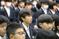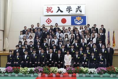 4月9日(火)に令和6年度入学式を行いました。62名の新入生が、大きな制服に身を包み、緊張しながら会場に入ってくる姿はとても初々しかったです。校長先生をはじめ、多くの方々の祝福を受けて、南郷中学校の生徒となりました。呼名の時の返事がとても元気がよく、姿勢や所作も素晴らしかったです。誓いの言葉も堂々とした態度で述べられ、不安よりも期待の方が多く伝わってきました。これからは、新入生62名を加えた207名で、さらに南郷中学校を盛り上げていきましょう。