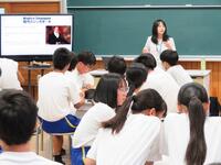 9月6日(金)の総合的な学習の時間に、3年生を対象とした国際理解講座を行いました。講座の進行や補助は生徒たちが務めました。