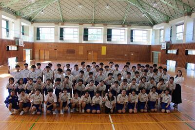 宮崎県国際交流員の方の講話では、シンガポールの食や文化などを画像や映像を使って、楽しく、わかりやすく紹介していただきました。体験活動では、「クティクティ(おはじきのようなもの)」や「チャプテー(足でシャトルのようなものを蹴り合う)」など、シンガポールの伝統的な遊びを体験させていただき、生徒たちはとても盛り上がっていました。