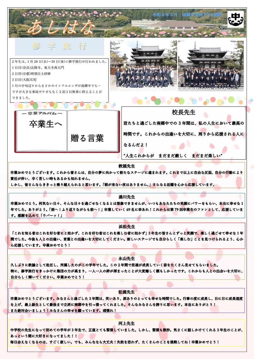 本Webページの著作権は、南郷中学校が有します。無断で、文章・画像などの複製・転載を禁じます。