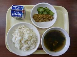 今日の給食は「麦ごはん、大豆の磯煮、きゅうりとわかめの酢の物」でした。今日もおいしくいただきました。ありがとうございます。