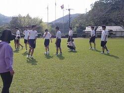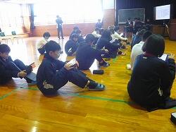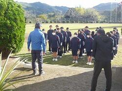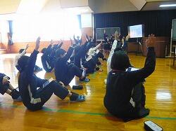 3時間目に小中合同で持久走大会の練習をしました。全体であいさつをしたあとは準備運動を入念に行いました。