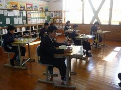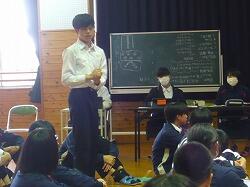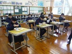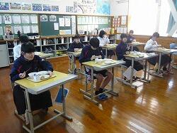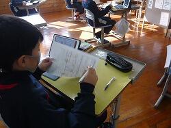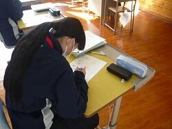 2年生の書写、3年生の英語の授業の様子です。2年生はお正月の書き初め用か、はたまた立志式に向けてなのか「座右の銘」らしき言葉を書いていました。