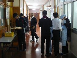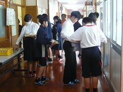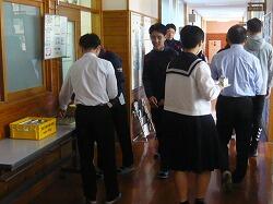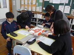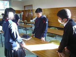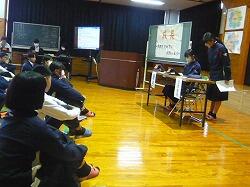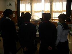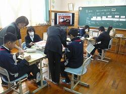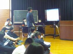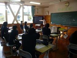 1時間目の理科(2年生)の授業です。電気回路の学習をしていました。教室内に4つの電気回路の模型(豆電球付き)があり、それぞれに電気がつかない理由があります。その理由を試行錯誤しながら考えるという授業でした。