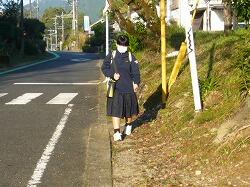 今朝の登校の様子です。今日も元気に登校してきました。今日は持久走大会があります。