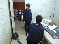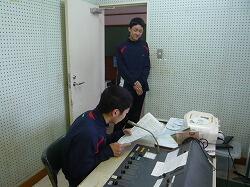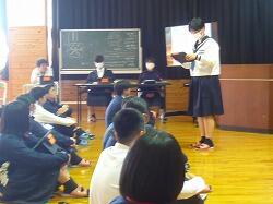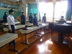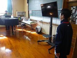 1年生は社会の授業です。2年生は音楽の授業です。発声練習をしています。