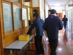 今日の給食は「麦ごはん、もち入りキムチ鍋、もやしナムル」でした。今日もおいしくいただきました。ありがとうございます。放送では献立の内容や持久走大会に向けて、走り方のこつなどの紹介がありました。