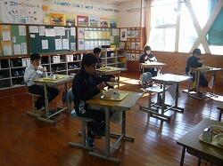 1年生は「みやざき学習状況調査」をしています。タブレットを使います。3年生は美術で、オルゴールの木箱に模様を彫っていました。2年生は美術でイメージを形にということでジオラマをつくっていました。