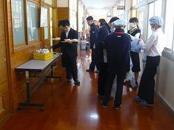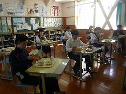 今日の給食は「麦ごはん、豚汁、いわしのしょうが煮、甘酢和え」でした。今日もおいしくいただきました。ありがとうございます。