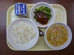 今日の給食は「麦ごはん、ABCスープ、ハンバーグデミグラスソース、ブロッコリー」でした。今日もおいしくいただきました。ありがとうございます。