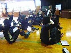 5時間目は全校生徒対象の食育の授業がありました。「朝ご飯を食べるとよいこと3つは?」など、食事の大切さを学びました。正解は写真の最後にあります。